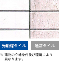 TOTOが技術開発したタイル表面に光触媒(酸化チタン)を焼き付けたタイルです。