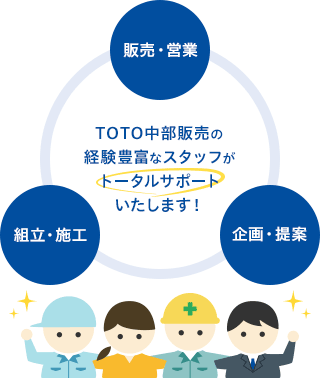 弊社はTOTOグループ会社の一員として、中部エリア(愛知・岐阜・三重・静岡)で事業活動を展開している住宅設備機器の商社です。